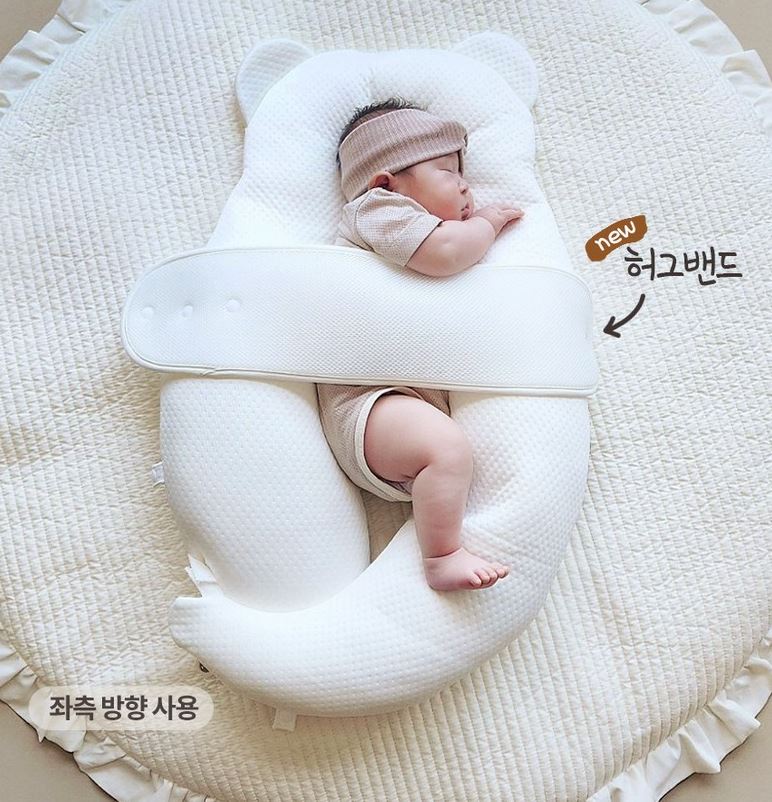 아기가 한쪽으로만 눕는 것을 방지하고, 편안한 수면 자세를 유지하게 도와주는 제품입니다. 허그곰 디자인으로 귀여움까지 더했으며, 신생아의 척추와 머리 모양 발달에 도움을 줍니다. 특히 모유 수유 후 트림을 시킨 뒤 옆으로 재울 때 유용합니다.