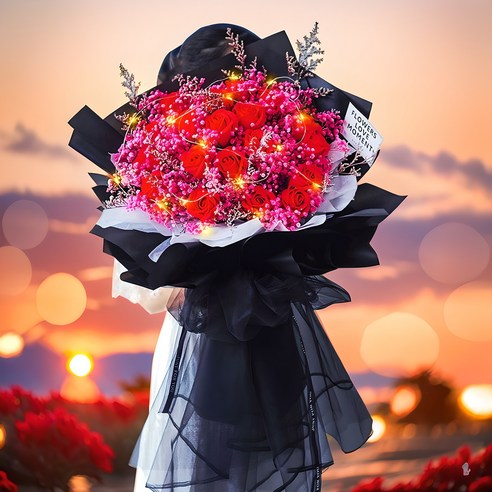 압도적인 크기의 드라이 플라워 꽃다발에 LED 조명이 더해진 선물입니다. 시각적 만족도는 물론, 은은한 빛이 꽃의 아름다움을 더욱 돋보이게 합니다. 기념일에 깜짝 선물로 준비하면 여자친구의 마음을 사로잡기 충분합니다.